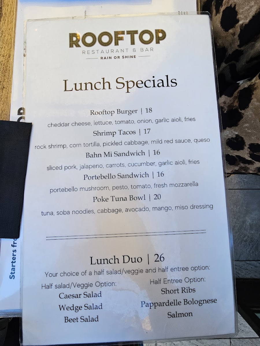 The culinary offerings at Rooftop Restaurant & Bar are certainly a standout. Dive into their Wedge Salad or Caesar Salad to start your meal—the freshness of the ingredients is palpable, with crisp greens and zesty dressings that awaken the palate. For the main course, the menu boasts delightful options like the Sea Scallops, perfectly seared to golden perfection, and the rich Seafood Pappardelle Bolognese—a dish that promises to take your taste buds on a captivating journey through satisfying textures and bold flavors.